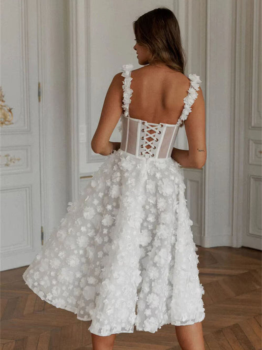 3D Flower Spaghetti Straps Short Wedding Dress Bridal Gown #SWA11