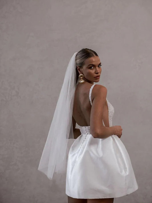 Beaded Spaghetti Straps Short Wedding Dress Mini Bridal Gown #SWA05