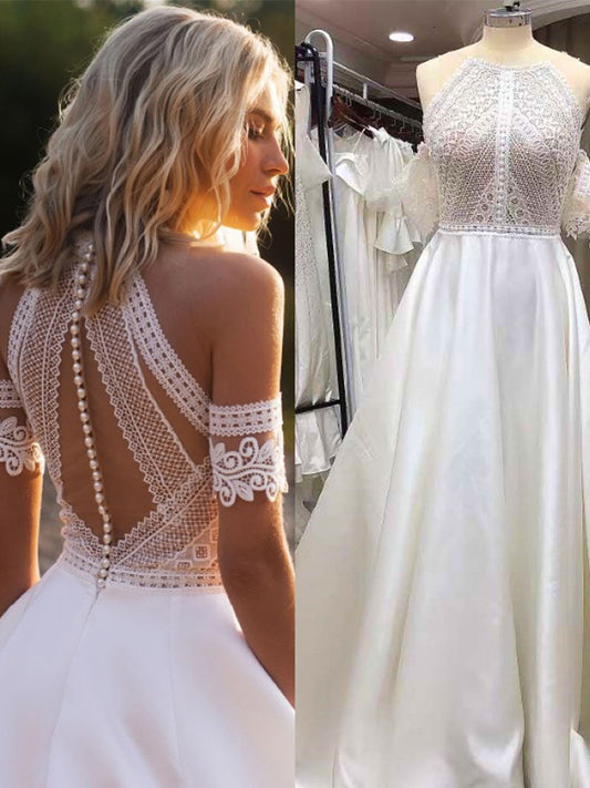 Boho Wedding Dress A-line Bridal Gown with Halter Neck #AWA03